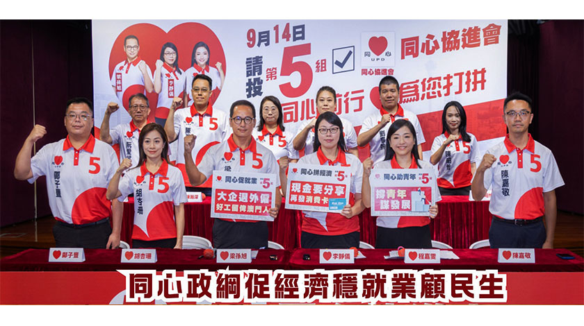 【本報訊】第八屆立法會選舉各候選組別續展開競選活動,其中直選第五組同心協進會昨日舉行政綱發佈會(見圖)。候選人李靜儀、梁孫旭和程嘉雯表示,疫後經濟復甦不均,旅客和居民消費觀念轉變,中小微企經營困難,居民搵工難,要求政府派發消費卡,促進社區經濟,紓緩居民生活壓力;完善外僱退場機制,將好工留給本地人;優化民生福利政策措施,落實「促經濟、穩就業、顧民生」的競選理念。他們目標力爭三席。