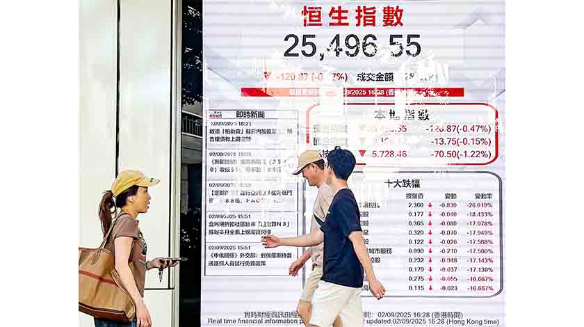 【香港中通社9月2日電】(記者 徐嘉儀)港股終止兩連升,恆生指數9月2日收市報25496點,跌120點。大市成交額為3281億港元。