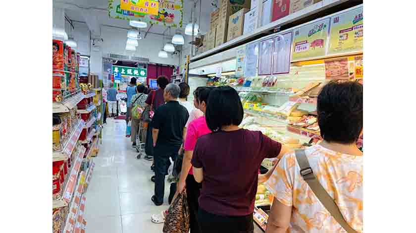 昨日天氣未轉差,日間大部份時間天朗氣清,但在居民趕搶購物資之下,市面氣氛緊張。有不少居民表示,希望供水供電情況正常,亦希望水浸及颱風的破壞情況不要太嚴重,平安過渡。也有居民表示,家中會準備好電筒、移動充電寶等物資。