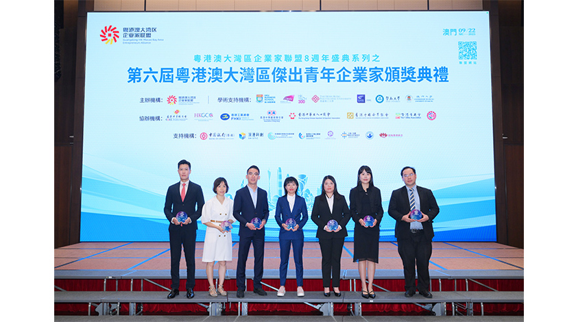 【特訊】由粵港澳大灣區企業家聯盟主辦的第六屆粵港澳大灣區傑出青年企業家頒獎典禮9月22日在香港及澳門兩地同步舉行,澳門會場設於澳門大學。活動共有79名青年企業家獲獎,當中8名來自澳門,包括3名澳大校友。