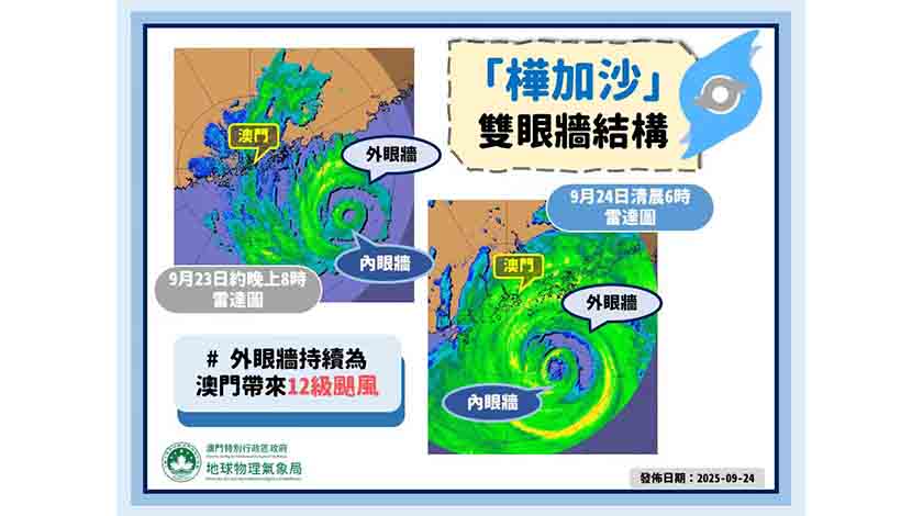 「樺加沙」雙眼牆結構,助力較遠距離十號風球