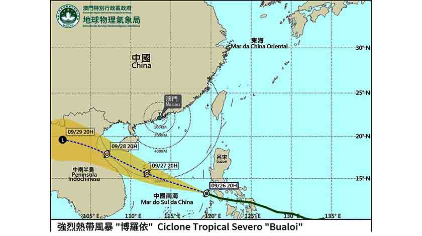 氣象局指,按現時預測路徑,「博羅依」將向西北方向移動橫過南海中部,大致趨向海南島以南海域,與本澳保持超過650公里距離。