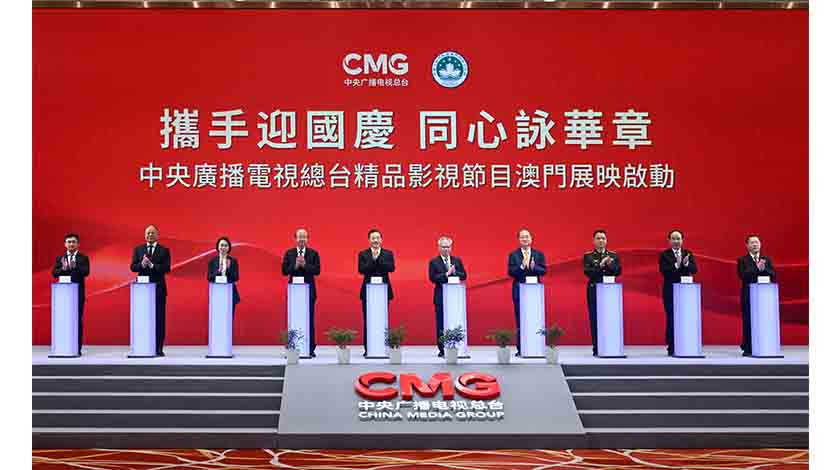 【特訊】行政長官岑浩輝與一眾主禮嘉賓共同啟動“攜手迎國慶 同心詠華章”中央廣播電視總台精品影視節目澳門專場展映。