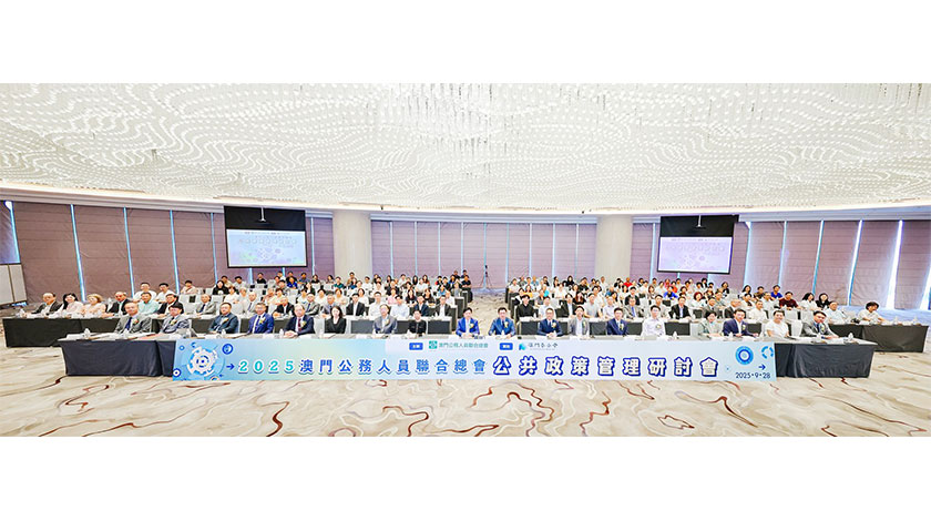 【特訊】澳門公務人員聯合總會(公總)9月28日舉行“經濟轉型與政府治理”公共政策管理研討會。出席嘉賓有中聯辦社工部孫志君處長,工聯總會副會長、立法會議員李振宇,郵電局行政委員會鍾煥玲委員,市政署市政管理委員會黃逸聰廳長,衛生局陳志堅廳長,文化局馮天雲廳長,行政公職局陳思恆代廳長,經濟及科技發展局勞永康代廳長,澳門發展策略研究中心陳志峰秘書長,澳門管理學院鄭麗湘副院長,香港公務員總工會馮傳宗主席,以及公總彭冠豪會長、唐偉杰理事長和李華苞監事長。主講嘉賓則有全國政協、行政會葉兆佳委員,南開大學行政管理系劉銀喜教授,中山大學區域開放與合作研究院毛艷華院長,以及復旦大學經濟學院周晶副教授。