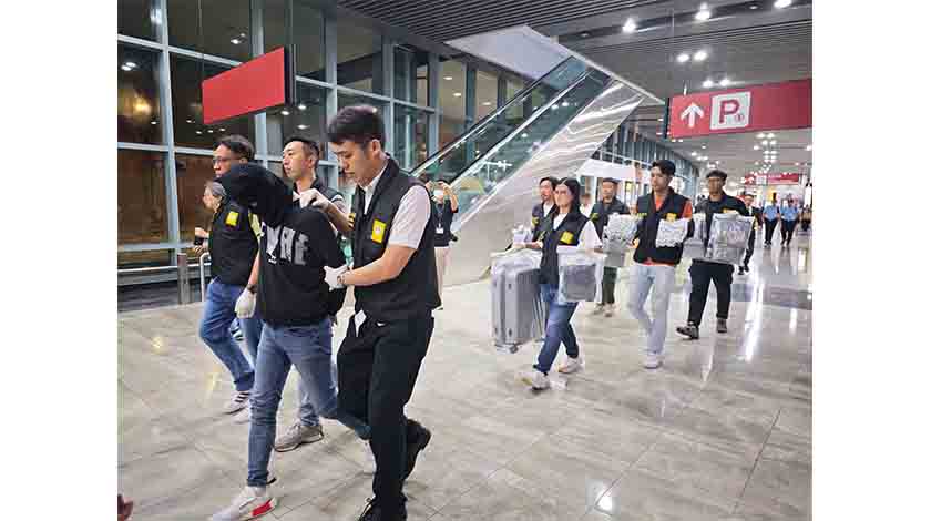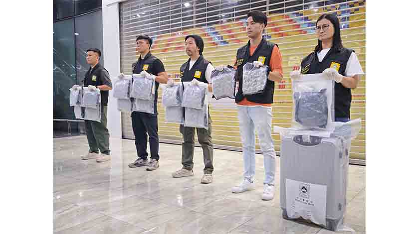 【本報訊】司警前日在澳門國際機場拘捕一名販毒集團骨幹香港男子和兩名馬來西亞男子,撿獲價值三千一百七十七萬元的三十一公斤大麻花,為本澳破獲歷來最大宗偷運大麻花䅁。事隔一日,司警再於澳門國際機場拘捕一名馬來西亞男子並撿獲超過九點四公斤大麻花,價值九百四十三萬元。由於五日內司警在澳門國際機場破獲的三宗偷運大麻花案相類同,司警不排除為同一販毒集團,有待深入跟進調查。