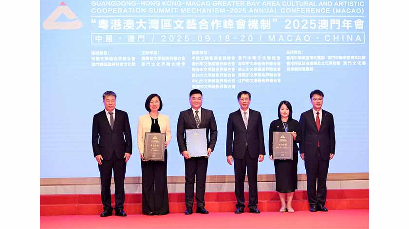 「粵港澳大灣區文藝合作峰會機制」是經國務院港澳事務辦公室批准,由中國文聯指導,廣東省文聯和中國文聯香港會員總會、澳門中華文化聯誼會及珠三角九市文聯共同設立的工作機制。自2021 年 10 月創設以來,持續推進合作創新、路徑突破與平台升級,不斷釋放峰會機制的聚合效能,打造了「灣區有新聲」、文藝創新論壇、文藝骨幹交流季,以及電影、雜技、曲藝藝術周等十餘個品牌項目。