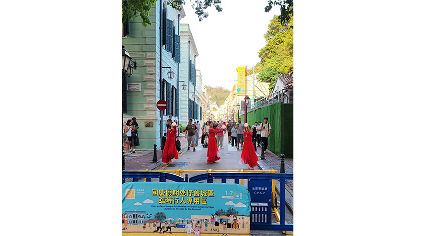 為慶祝國慶假期,確保氹仔舊城區及大三巴鄰近地區的人流及交通有序通行,特區政府聯合商會社團於10月1日至7日期間,每日中午12時至晚上7時在兩區分別設置臨時行人專用區。