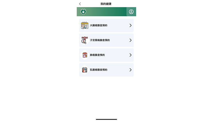 屆時用戶只要點擊入平台,就會自動全顯示四大癌症篩查,倘用戶為男性則「婦女兩癌」乳癌及子宮頸癌不會開放選擇。平台也會審核用戶條件,倘不合亦無法再進下一步,如大腸癌篩查限五十至七十歲。