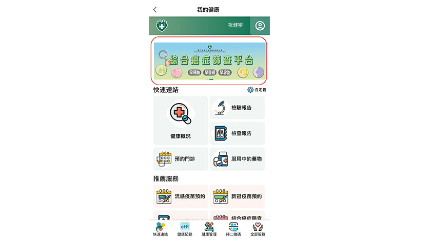 【本報訊】早發現、早診治,衛生局整合在「一戶通」的預約癌症篩查服務,將於今(九日)起推出綜合癌症篩查平台,讓市民可一站式取得肺癌、大腸癌、乳癌及子宮頸癌四項癌症評估及預約篩查服務。
