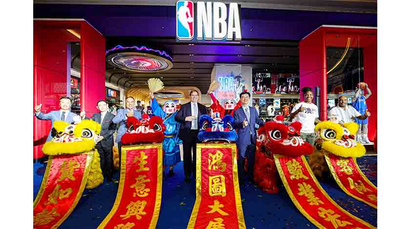 NBA副總裁兼首席運營官馬克•塔圖姆、拉斯維加斯金沙集團總裁兼首席營運總裁Patrick Dumont、金沙中國有限公司行政總裁兼執行董事鄭君諾、NBA亞洲董事總經理張文正、NBA中國高級副總裁李建煒、奈史密斯籃球名人堂成員添.夏達威和WNBA總冠軍成員達拉斯飛翼隊球員麥伊莎•海恩斯-阿倫攜手出席了旗艦店開幕儀式。