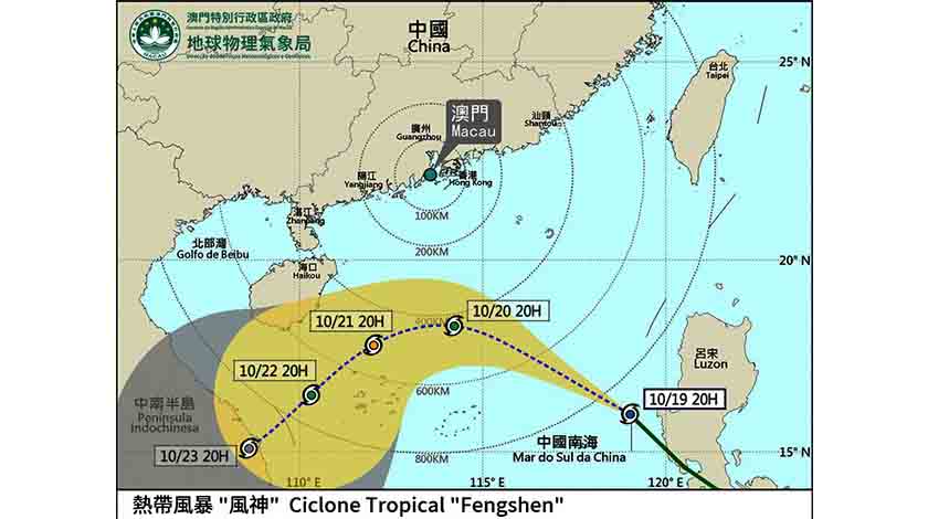 按目前預測,「風神」將於今晚至明晨在本澳以南約四百公里掠過,本澳風勢會進一步增強,對本澳造成的影響增加。