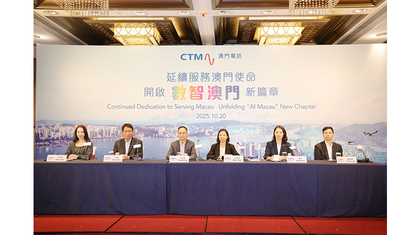 10月20日下午,澳門電訊舉行「延續服務澳門使命 開啟數智澳門新願景」新聞發佈會,該公司執行委員會成員包括商務副總裁湛寶儀、網絡服務副總裁伍時耀、財務副總裁關頴、資訊科技副總裁許國苗、客戶服務副總裁劉健國、企業傳訊總監兼執行委員會秘書陳靜儀列席,介紹澳門電訊聚焦AI、大數據等應用發展規劃,開啟「數智澳門」新願景篇章。同時藉著10月20日澳門電訊44周年之際,宣佈一次性全方位通訊服務減免方案詳情。