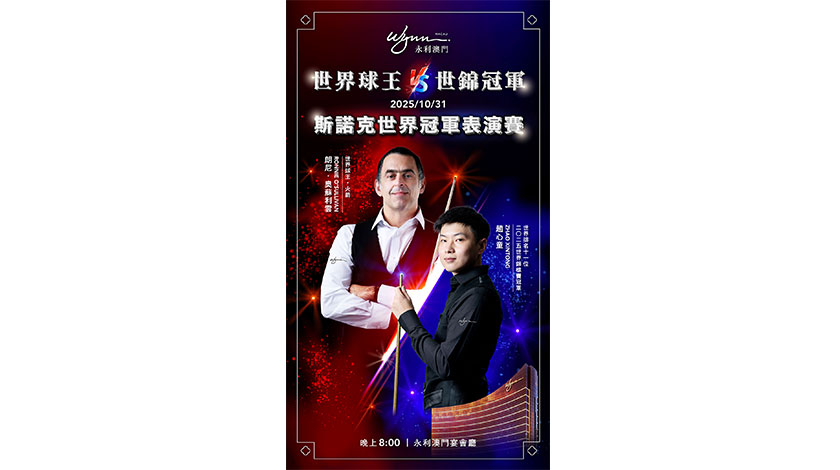 【特訊】為支持特區政府「1+4」適度多元發展策略,以體育盛事推動體育與旅遊跨界融合,永利將於本月 31 日假永利澳門宴會廳舉辦「世界球王 vs. 世錦冠軍 • 斯諾克世界冠軍表演賽」。本次賽事特邀斯諾克傳奇球王——七屆世界錦標賽冠軍得主朗尼・奧蘇利雲(Ronnie O'Sullivan),與今年歷史性成為中國及亞洲首位斯諾克世錦賽冠軍的趙心童(Zhao Xintong)同場獻技,上演一場精彩絕倫的國際級斯諾克對決,為市民及旅客帶來難忘的體育盛宴。