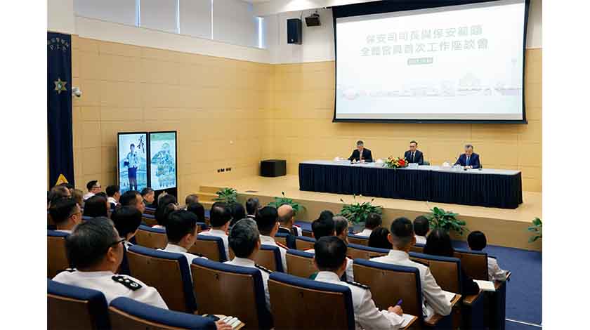 【特訊】澳門保安司司長陳子勁前日上午在治安警察局總部大樓主持召開保安範疇的工作座談,參與座談包括警察總局局長梁文昌及海關關長何浩瀚,以及保安範疇全體領導主管。會上,陳子勁總結過去的工作成果、傳達施政理念及對未來工作方向作出部署。