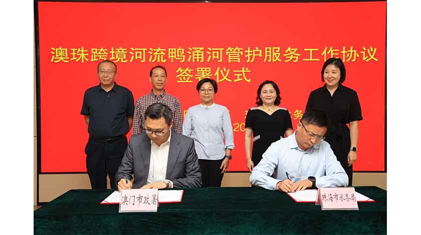 澳門市政署市政管理委員會主席周偉迎一行與珠海市水務局黨組書記、局長許蓓蕾一同考察了鴨涌河的水體及綠化管護情況,並共同簽署《鴨涌河水體、河岸綠化及設施管理協議書》;根據協定,澳門市政署委託珠海市水務局,對鴨涌河的水體治理、河岸綠化養護及沉沙井等設施進行管護,加速“一河兩岸”親水生態景觀長廊建設。另外,在廣東省西江流域管理局、中共珠海市委台港澳工作辦公室、珠海市生態環境局等單位代表的見證下,《鴨涌河跨境河流協同治理工作辦法》亦同步啟動實施。