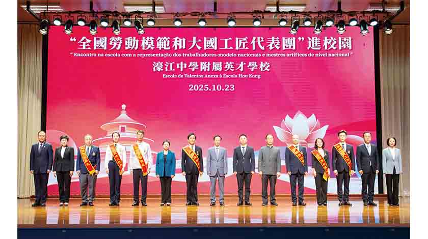 此外,代表團還走進校園,與師生面對面互動,分享了他們的成長歷程、專業技術與實踐經驗,傳達敬業、專注與精益為核心的工匠精神,並透過生動的講述與學生真摯交流。代表團成員鼓勵澳門青年學子樹立遠大理想,刻苦學習,積極向上。