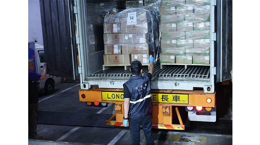 首批供澳門賽區運動員食品,包括凍肉類食品、冷凍包點及調味料,總重共45.3噸,按照嚴謹的食品安全保障工作方案,已順利從廣州總倉運往澳門。為確保專供澳區食材的安全,貨車通關後直接運往檢疫地點進行卸貨檢疫,由市政署人員核對貨車封條及總倉提供之貨物清單資料,並進行檢驗檢疫,隨即進入專倉上鎖保存,實現從產地到使用地閉環管理,保障食材安全可靠。
