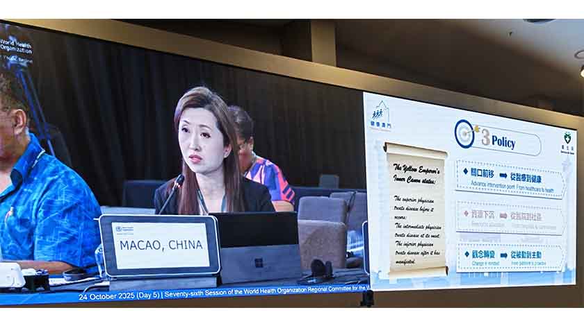 會議期間,澳門特別行政區政府代表團與世衛西太區規劃管理司執行主任劉岳博士、疾病控制規劃司司長Huong Thi Giang Tran及健康安全與應急司司長Dr Gina Samaan會面。代表團詳細介紹了本澳在健康澳門建設和慢性病管理工作的規劃和進展,包括今年推出“健康社區”計劃,透過線上多媒體宣傳、線下主題活動、數字化健康工具及社區人員培訓,促進居民健康行為與主動健康管理。2025年1月至9月期間,社區主題活動累計約8萬人次參與。“健康企業”計劃則惠及10萬名員工,相當於本澳逾1/4勞動人口;而“健康校園”計劃覆蓋全澳所有中、小、幼學校及高等院校,逾16.6萬名教職員與學生受惠。