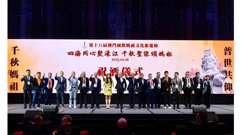 湄洲媽祖祖廟董事長林金贊在致辭中表示,澳門與媽祖文化的融合,早已融入城市的血脈,媽祖文化在此落地生根,成為維繫內地與澳門的精神紐帶,更鑄就了連接全球華人的文化基因。作為媽祖文化的重要傳承地,湄洲媽祖祖廟與澳門媽祖文化界保持著深厚的情誼與緊密的聯繫,從共慶民俗盛典到共研文化精髓,從互派交流團到攜手推動媽祖文化申遺,見證著兩地情誼從相知走向相融。