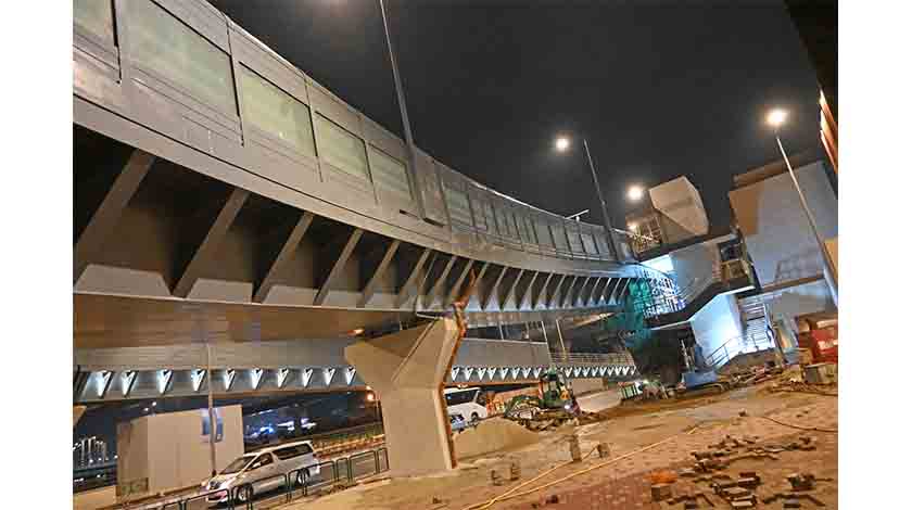 按判給合同,天橋計劃是於下月竣工。根據運輸工務範疇超過一億之工程的狀況披露,截至本月中,工程沒超時,但有百分之一點九的超支。