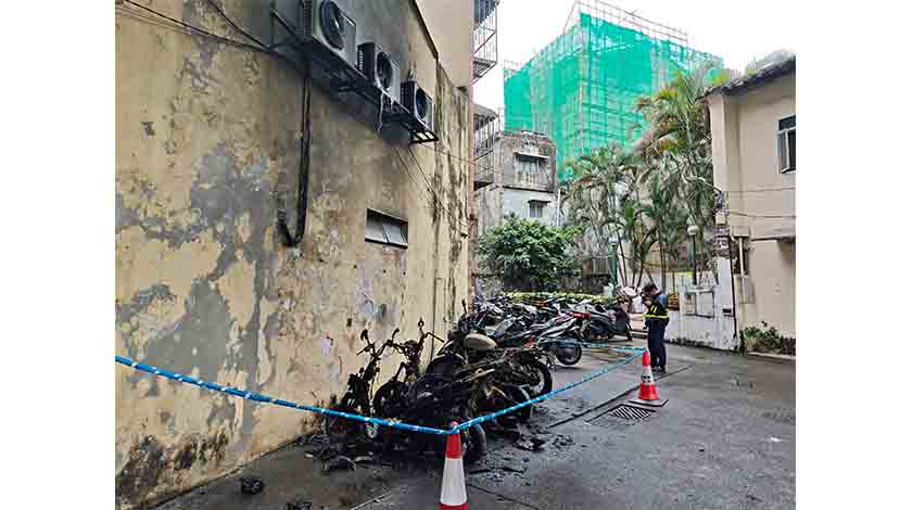 昨日清晨五時許,消防局接報䓍堆街蠔里近福誠大廈有電單車著火,消防員到場見數輛電單車著火燃燒,火勢一度猛烈。立即拖喉射水撲救,火舌很快被救熄。消防員檢查發現現場有四輛電單車焚毁燒剩支架,旁邊另有兩部電單車被波及有不同程度燒毁,而被焚毁數輛電單車相鄰的建築物外牆有三部冷氣機亦被波及薰黑及燒毁。事件中無人受傷,消防員初步認為起火原因有可疑,通知司警局跟進處理。