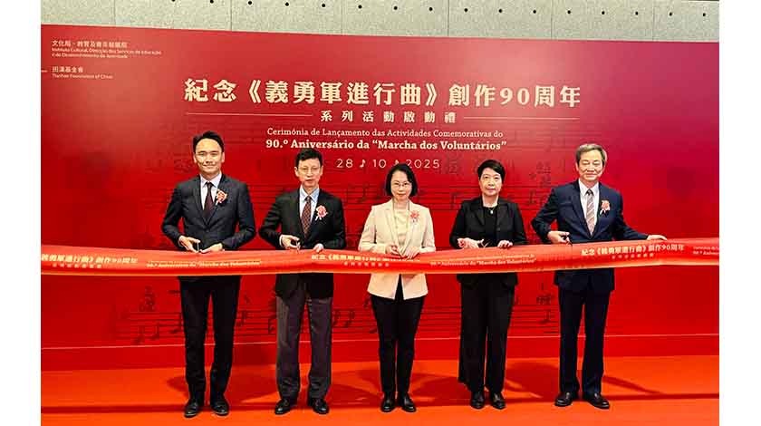 為紀念《義勇軍進行曲》創作九十周年,澳門特區政府秉持「銘記歷史、緬懷先烈、珍愛和平、開創未來」的理念,在田漢基金會的大力支持下,策劃組織一系列活動,包括專題講座、文藝匯演及圖片展覽,旨在弘揚偉大的抗戰精神,激發青年愛國熱情,增強民族自豪感。系列活動昨由社會文化司司長柯嵐、文化局局長梁惠敏、教青局局長龔志明、田漢基金會秘書長歐陽維等嘉賓主持開幕儀式。隨後舉行「烽火旋律•民族魂」文藝匯演,由文化局澳門演藝學院、聖公會(澳門)蔡高中學及本地藝團演出,藉此將國歌的精神薪火相傳,讓珍愛和平的信念在澳門生根發芽;約有三百人出席。