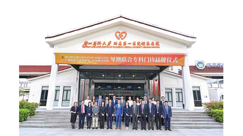 【特訊】澳門特別行政區政府衛生局仁伯爵綜合醫院與廣州醫科大學附屬第一醫院橫琴醫院(下稱“廣醫一院橫琴醫院”)於昨日在橫琴粵澳深度合作區舉行“琴澳聯合專科門診”掛牌儀式,標誌着澳琴醫療一體化進程邁向新階段。衛生局局長羅奕龍、橫琴粵澳深度合作區民生事務局局長馮方丹、衛生局仁伯爵綜合醫院代院長戴華浩、橫琴粵澳深度合作區民生事務局副局長蘇凱慈、廣醫一院橫琴醫院院長黃錦坤、黨委書記張挪富等嘉賓出席並主持了掛牌儀式。