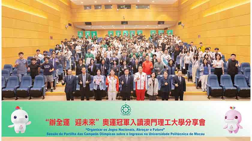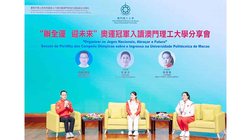 【特訊】為慶祝中華人民共和國成立76周年暨澳門特別行政區成立26周年及第十五屆全國運動會舉辦之際,澳門理工大學舉辦“辦全運•迎未來—奧運冠軍入讀澳門理工大學分享會”。分享會以“與奧運冠軍共話體育精神,點燃青春力量”為主題,由澳門理工大學學生、奧運金牌得主焦劉洋及張楊楊主講,分享以體育為橋梁,助力粵港澳大灣區體育事業建設,激發青年群體以奮進姿態迎接“全運新時代”。澳理大行政管理委員會成員、學院院長、副院長、各單位主管,以及一眾師生三百多人出席聆聽,現場氣氛熱烈。