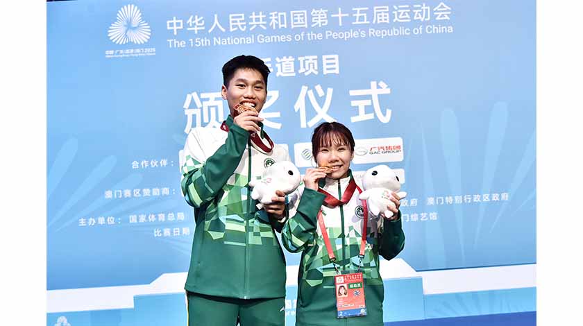 本屆全運會賽場上,澳門空手道隊共取得了3金2銅的驕人成績,這是持之以恆刻苦訓練、精益求精超越自我的成果,令廣大澳門居民歡欣鼓舞,倍感自豪!期望各位運動員以此為新的起點,持續發揚追求卓越的體育精神,在未來的賽場上再接再厲,賽出風采,為澳門特區爭光添彩!」
