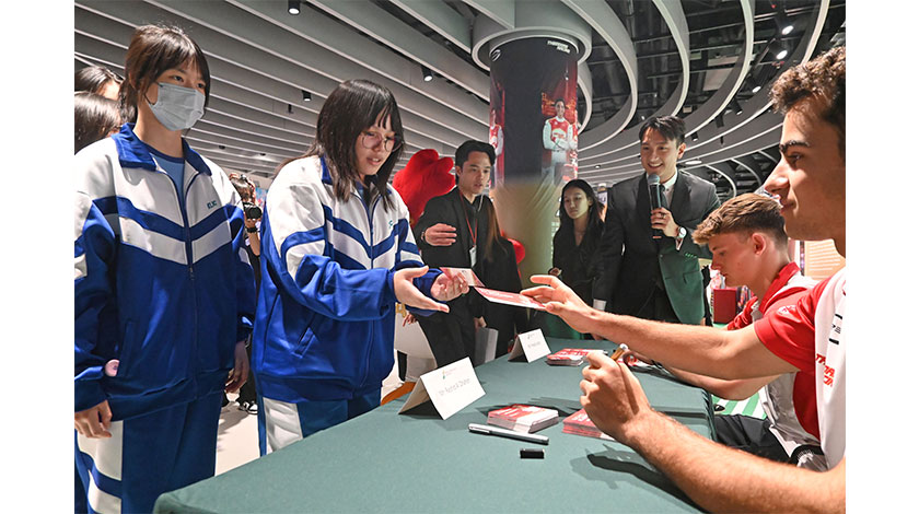 體驗展昨在大賽車博物館舉行開幕式,今年出戰東望洋賽道上FR世界盃的澳娛綜合德利Prema車隊兩位車手史雷特(Freddie Slater)及達阿尼(Rashid Al Dhaheri)現身參與,並扼要分享其投身賽車運動的感受。兩人在觀展後又為現場學生簽名。