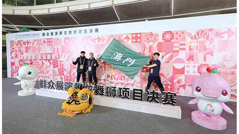 【特訊】第十五屆全國運動會群眾展演舞龍舞獅項目決賽於11月11日至13日在佛山嶺南明珠體育館舉行,澳門理工大學護理學學士課程學生黃澤榮,以及體育教育學士課程學生余樂琪代表澳門出戰賽事,憑著與隊員極佳的默契配合和出色的表現,分別於南獅障礙及舞龍障礙項目勇奪二等獎和三等獎,為澳門增光添彩。