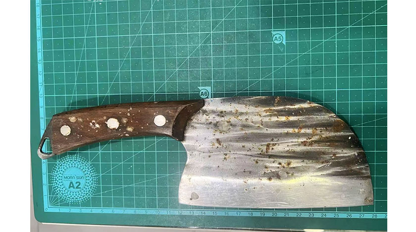 【本報訊】一名在食店任職的內地外僱,涉嫌盜取廚房一把斬骨刀,並透過手機多次向僱主發出持刀恐嚇訊息。僱主因擔心人身安全,報警求助,警方調查後在關閘截獲涉嫌男子,並搜獲該把刀,其聲稱因近日聽聞僱主欲解僱他,故作出有關恐嚇僱主的行為。