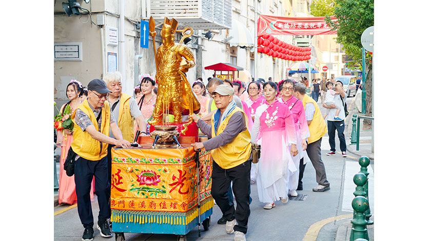 【特訊】澳門蓮溪廟值理會主辦的華光聖尊遶境活動,昨(16)日下午四時半在新橋蓮溪廟前地舉行,活動得到特區政府文化發展基金的資助。業餘體育會和新橋青少年龍獅團協助。蓮溪廟值理會的多位負責人梁慶庭、陳志杰、尹根、李志遠、雷志江、杜燦榮、吳松錦、黃沛球及錢進浩等人出席。