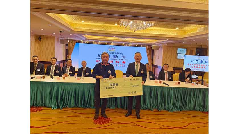 同善堂昨為「二零二五---二零二六年度沿門勸捐」舉行發佈會,同善堂值理會主席崔世平、會員大會副主席胡順謙、值理會副主席林金城、鄭秀明、劉藝良、馬有友、何敬麟、莫志偉、黃焯黃出席,及介紹同善堂五大核心服務。發布會上,胡順謙率先捐出一百萬元,支持「二零二五---二零二六年度沿門勸捐」,亦呼籲各界踴躍捐款。