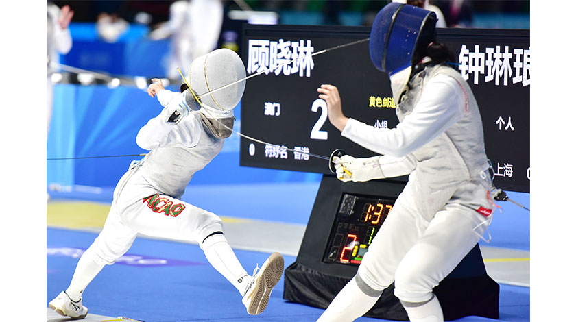 在香港賽區進行的劍擊賽事,女子花劍個人賽有顧曉琳成功闖過小組賽階段,取得3勝3負,先後擊敗香港選手、湖南及以個人名義參賽的選手,並以小組賽總排名第13位,取得晉級32強淘汰賽的資格,惜最後在首圈淘汰賽負重慶選手8比15,而止步於32強;另外兩名女子花劍選手,林芷薇與易碧真經過小組賽階段後均未能晉級,總成績分別排第41位和第42位。此外,林承佑出戰男子重劍,在小組賽錄得1勝5負,總成績排第36位,未能晉級。