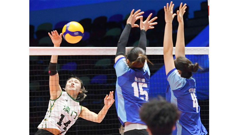 排球女子成年組,澳門隊在排名小組賽對廣東隊,結果以局數0比3告負。