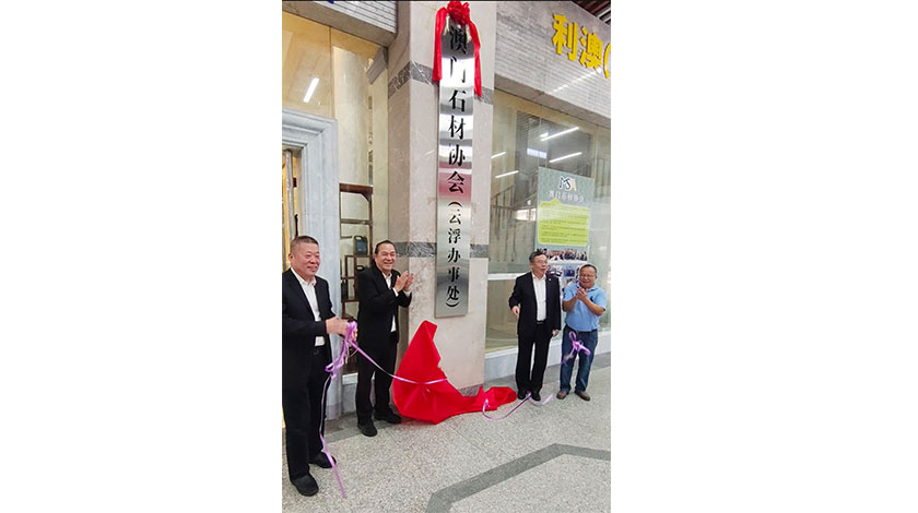 該協會於展館內設立了「澳門石材協會(雲浮辦事處)」,並於石展會首日,由「中國石材協會」會長陳國慶、副會長齊子剛,及「澳門石材協會」會長黃鏡煒、副會長王維東進行了揭牌儀式。該協會為來賓介紹協會成立的宗旨、近年的重要活動,包括:本年3月,與雲浮市市長 李慶新帶領的招商引資考察團在澳門交流,探討加強雲澳雙方合作及協助雲浮對外擴展石材產業;以「粵港澳大灣區石材灣區標準工作編制組」成員身份,參與編制相關技術研討會及討論會,支持祖國各行業規范的標準和綠色方向發展;協助澳門特別行政區政府編制石材維護實務課程教材,建設相關課室及實習室,並擔任該課程主講及指導教師,為澳門培育本地石材行業人才。