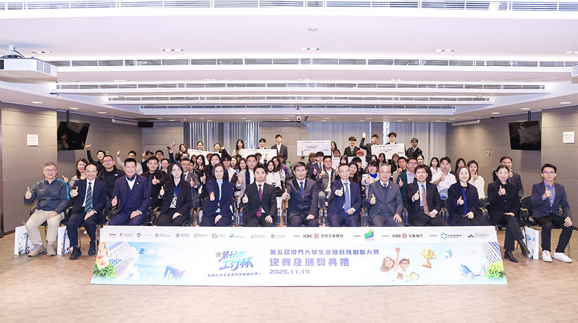 【特訊】由中國工商銀行主辦、工銀澳門承辦的「2025“工行杯”全國大學生金融科技創新大賽之第五屆澳門大學生金融科技創新大賽」於11月19日假置地廣場工銀(澳門)中心九樓會議廳舉行決賽及頒獎典禮。中聯辦經濟部副部長楊全州,澳門特區教育及青年發展局副局長丁少雄,中國工商銀行總行金融科技部副總經理黃玉,工銀澳門行政總裁牛建軍、副行政總裁龔光慶以及澳門科技發展基金、大橫琴(澳門)有限公司澳門青年創業孵化中心、澳門大學、澳門科技大學、澳門理工大學、澳門城市大學、澳門旅遊大學、澳門聖若瑟大學、澳門管理學院、中西創新學院、澳門鏡湖護理學院等機構代表出席。