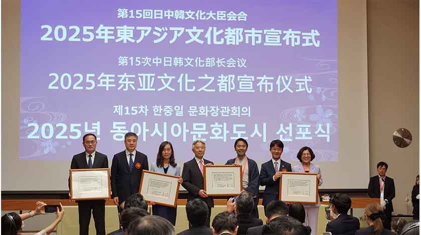 第十五次中日韓文化部長會議在去年九月於日本京都舉行,社會文化司司長歐陽瑜代表政府接受二○二五年「東亞文化之都」的名牌。社文司辦公室表示:「澳門正式當選二○二五年東亞文化之都城市,增添一張亮麗的『金名片』。」