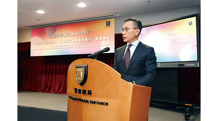 【特訊】為深化民防範疇各部門對國家“大安全、大應急”框架的理解,進一步提升澳門城市安全治理水平,警察總局於12月4日在出入境事務大樓舉辦專題講座,主題為“築牢公共安全防線,構建現代應急管理體系”。講座特邀原國務院參事、原國家減災委專家委副主任閃淳昌教授,以及中國工程院院士、清華大學公共安全研究院院長范維澄教授擔任主講嘉賓。保安司司長陳子勁、警察總局局長梁文昌,聯同民防架構、社區民防聯絡機制代表,以及民防志願者合共140人出席。活動在各方代表的支持下,設有40個線上直播點,線上參與總人數逾920人。