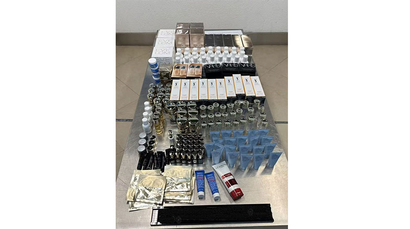 其中在澳門國際機場客運站,海關發現兩名搭乘同一航班的內地男子形跡可疑,經截查,發現二人將五零九件美妝產品收藏在隨身行李內,試圖偷運入境。