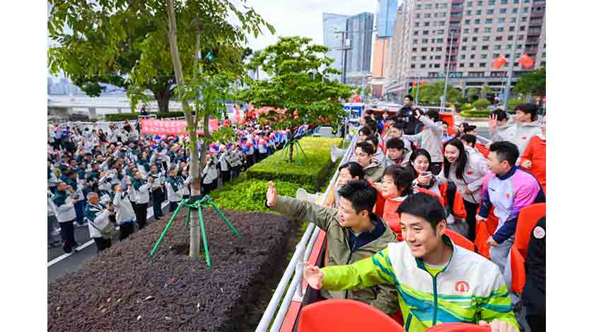 「銀河娛樂集團呈獻:『國家金牌運動員訪澳系列活動X活力行2025』」今年繼續支持及助力公益金百萬行。澳區省級政協委員聯誼會會長馬志成、中國澳門體育暨奧林匹克委員會理事會主席陳澤武,以及冠名贊助單位銀河娛樂集團主席呂耀東、企業事務董事林志成出席;與國家跳水隊領隊周繼紅、教練陳若琳、奧運金牌得主陳芋汐、昌雅妮、陳藝文、練俊傑、王宗源,以及掌敏潔、盧為、陳佳、林珊、鄭九源、胡宇康、朱子鋒、白鈺鳴等世界冠軍,以及“星級”特邀嘉賓蘇炳添、吳敏霞、李小鵬、李珊珊、何冲,還邀請了澳門運動員方文浩、鄭沘珞、陳珮琳、吳致軒等一同登上開蓬巴士,先後在觀音像和科學館附近停留,向途經的社會各界團體及參與者揮手致意,送上鼓勵和祝福。市民及參與者沿途熱情回應,吸引不少人拍照留念。
