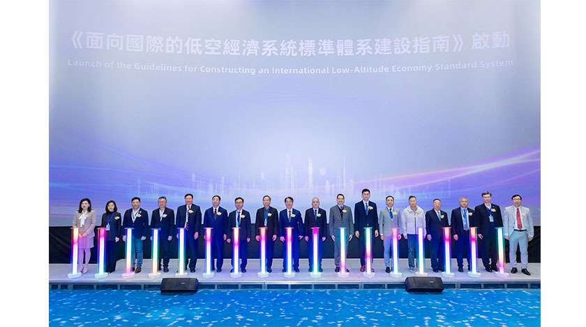 會上重磅發佈《面向國際的低空經濟系統標準體系建設指南》,並舉行啟動儀式。粵港澳大灣區標準創新聯盟低空經濟標準委員會召集人、澳門科技大學創新工程學院韓子天教授詳細介紹《面向國際的低空經濟系統標準體系建設指南》,呼籲構建統一、分層、協同的國際低空經濟標準體系,破解標準碎片化難題,為低空活動的安全運行與跨區域協同發展提供堅實保障。澳門特別行政區行政會委員、澳門管理學院唐繼宗院長,IEEE消費技術協會標準委員會曾劍鋒主席,澳門科學技術發展基金行政委員會余雨生主席,澳門中聯辦經濟部朱道陽調研員,澳門經濟及科技發展局陳祖榮副局長,澳門交通事務局李穎康副局長,中國科學院院士、蘭州大學大氣科學學院黃建平教授,國家精準農業航空施藥技術國際聯合研究中心主任、華南農業大學人工智能學院蘭玉彬教授,粵港澳大灣區標準創新聯盟低空經濟標準委員會主席、澳門科技大學澳門系統工程研究所所長伍乃騏講座教授,澳門低空經濟協會金輝會長,珠海市市場監督管理局(知識產權局)鄧未副局長,深圳市標準化協會但丹秘書長,以及澳門科技大學副校監、校長李行偉講座教授,創新工程學院韓子天教授等嘉賓共同啟動該指南,標誌著國際低空經濟標準體系建設邁入新階段。