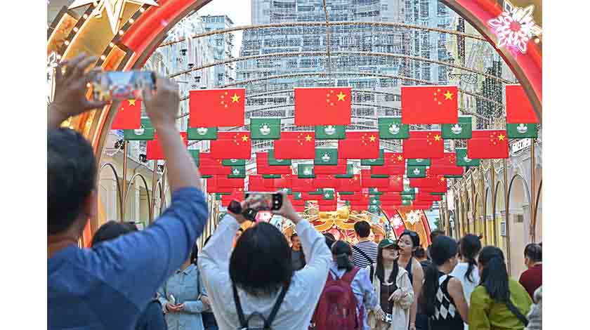 【本報訊】本澳回歸紀念日(前天)連冬至(昨天),又疊週六週日,加諸疊假補假,不少連休居民選擇離澳外遊,而回歸當日來澳旅客也按年大增九成四,旅遊區人氣旺。