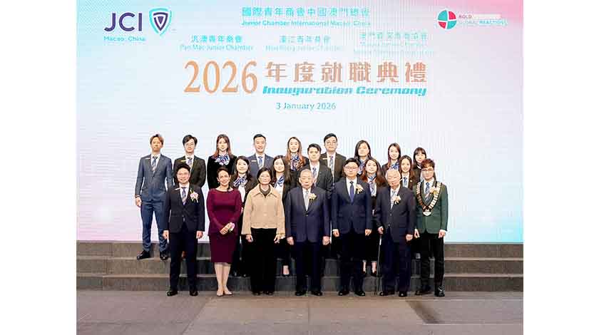 【特訊】國際青年商會中國澳門總會暨屬下分會:汎澳青年商會、濠江青年商會及澳門資深青商協會之2026年度理事局成員就職典禮已於1月3日舉行。總會會長陳嘉俊致辭時表示,未來將堅定踐行國際青年商會的使命與願景,致力構建青年發展平台,專注培養領導才能與社會責任感,持續推動青年成長並帶來正向改變。他強調,將積極依託青年商會的全球網絡資源,並緊密結合國家發展戰略,全力支持澳門青年拓展國際視野、把握國家機遇,為青年融入和服務國家發展大局創造更廣闊的空間。