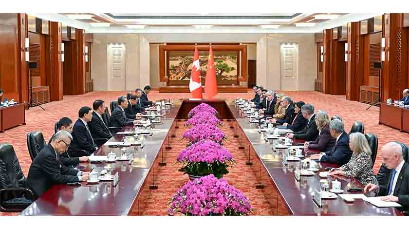 【中新社北京1月15日電】中國國務院總理李強1月15日下午在北京人民大會堂同來華進行正式訪問的加拿大總理卡尼舉行會談。