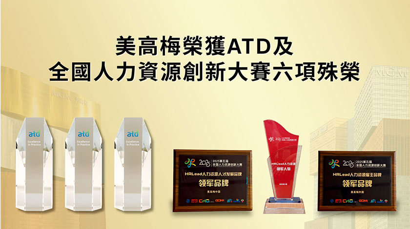 ATD有全球人才發展領域「奧斯卡獎」之稱,其卓越實踐獎旨在表揚能將學習與人才發展策略有效結合業務目標,並展現具體成效的優秀實踐案例。美高梅在眾多參賽企業中脫穎而出,分別於「職涯發展」、「顧客服務培訓」及「學習與發展」類別獲卓越實踐獎,成為47間獲獎機構之一。同時,美高梅於2025年第五屆全國人力資源創新大賽中,榮獲「HRLead人力資源僱主品牌領軍品牌」、「HRLead人力資源人才發展品牌領軍品牌」及「HRLead人力資源領軍人物」三項殊榮。