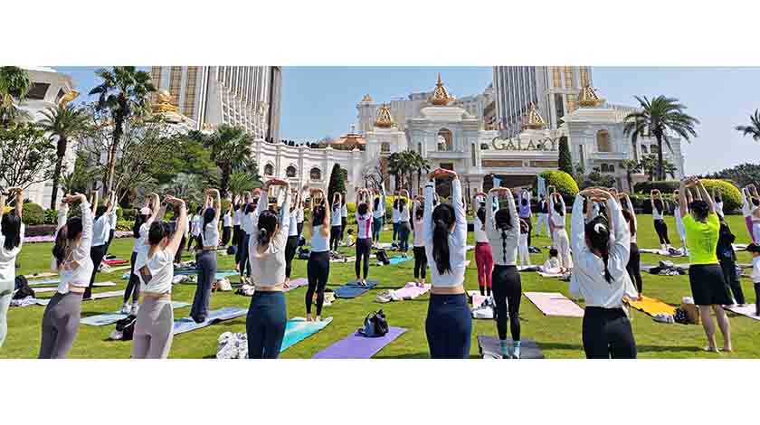 女神節三月八日當天,「澳門銀河」再度與澳門瑜伽專業協會攜手,聯乘JOY YOGA 、YOGA LIGHT 及中國澳門瑜伽體育總會,於連續第二年舉辦戶外瑜伽活動,吸引逾百位女性參與及支持。在晴空之下,大家以呼吸與伸展相互連繫,共同找回自信、平衡與內在寧靜。