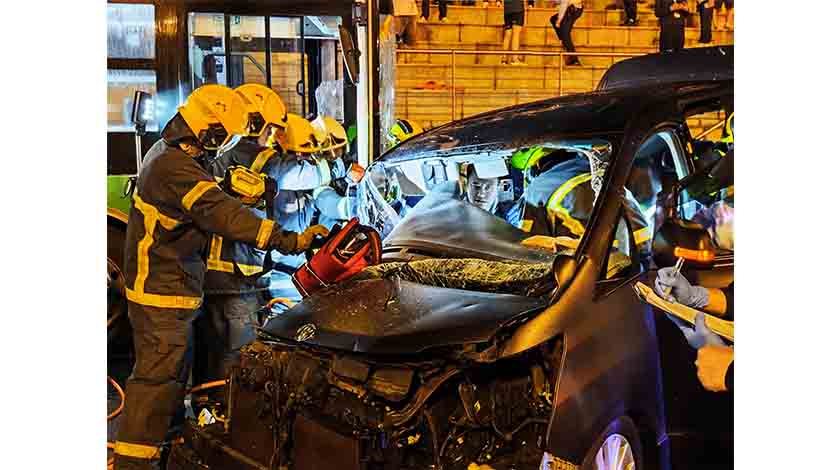 昨晚七時三十消防和警方接報友誼大馬路近賽車看台彎位發生嚴重交通意外,消防員到場發現有兩部七人車和一部巴士發生相撞,兩部七人車車頭嚴重撞毁,巴士車頭部分凹陷和車頭玻璃碎裂,路面滿佈大量水碼及車輛碎片。現場其中一部深色七人車上一名男駕駛者腿部被壓困於車廂内,路邊另有兩男一女傷者待援。