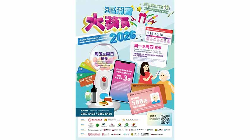 【本報訊】春節過後,本澳民生區消費活力回復疲弱,中小微企業的經營面臨困境,坊間普遍渴望政府繼續推出刺激本地消費措施,以提振社區經濟。千呼萬喚,終於有新消息,經濟及科技發展局定於今日中午十二時三十分舉行新聞發佈會,介紹「2026社區消費大獎賞」相關安排。